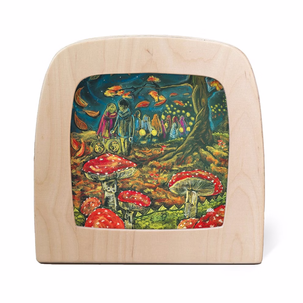 This autumnal silhouette from Kapitein Kalk brings warmth and colour into your home. The soft light from the Toverlux lamp illuminates the atmospheric illustrations on the translucent material and brings the magic of autumn to life. The result is a small work of art reminiscent of golden leaves, clear air and peaceful evenings.