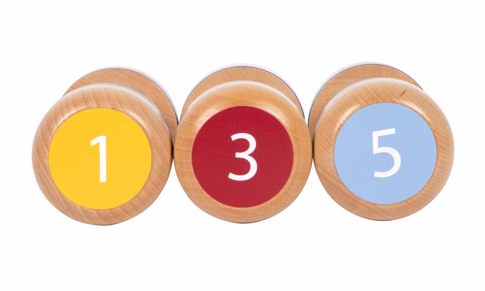 El juego de reloj de arena con divisiones de 1, 3, 10 y 30 minutos para entrenar el sentido del tiempo y la duración también es visualmente atractivo gracias a la alta proporción de madera natural combinada con colores modernos y es un punto de atracción en el aula o la habitación de los niños. Su forma redondeada lo hace especialmente agradable al tacto.