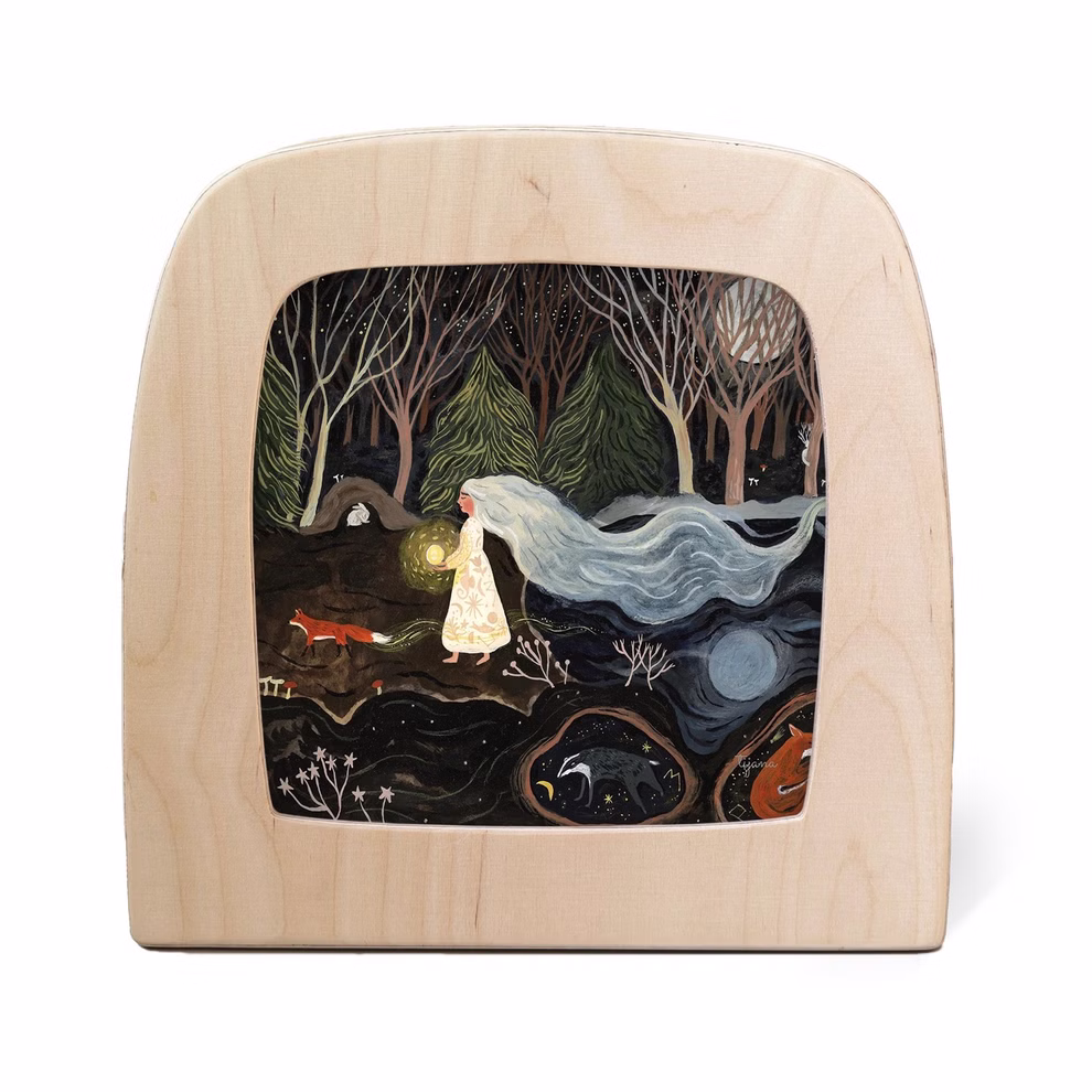 La silueta Toverlux "Luz en la oscuridad" de Tijana Draws aporta calidez y comodidad a su hogar. Impreso en material translúcido, el motivo finamente ilustrado se despliega en cuanto se desliza en la lámpara Toverlux o en el marco a juego. Esto crea un suave juego de luces y colores que crea un ambiente tranquilo y poético, perfecto para largas veladas o momentos de silencio.