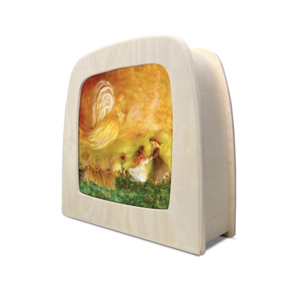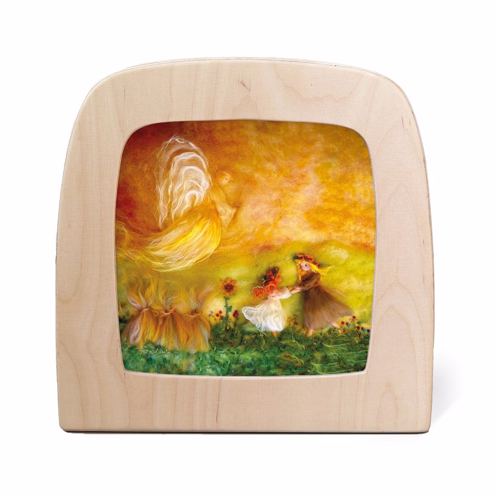 La silueta de ángel de la cosecha de Het Wol Feetje aporta un ambiente suave y otoñal a su hogar. Fabricada en material translúcido, despliega todo su efecto cuando la colocas en la lámpara o el marco Toverlux. Esto transforma la luz en un cálido juego de colores y formas que da vida a la magia de la estación de la cosecha.