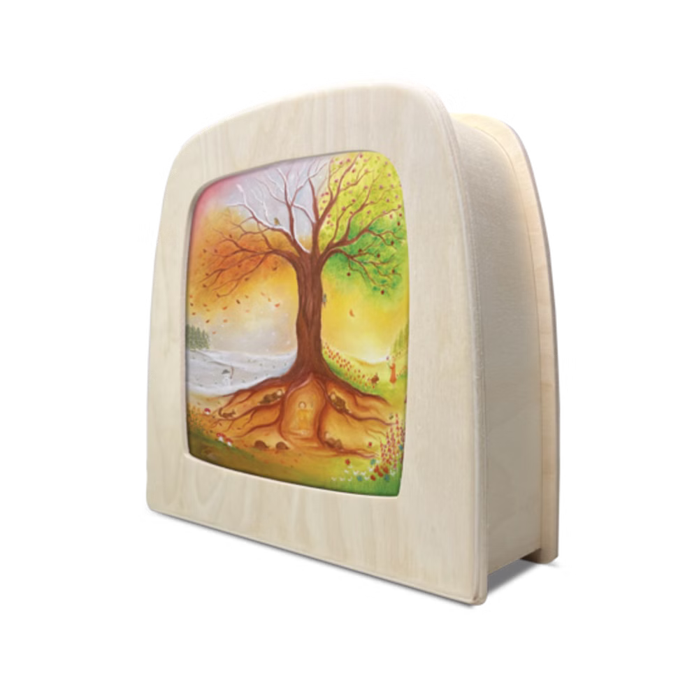Con la silueta Toverlux "Árbol de las estaciones" de Baukje Exler, tendrá en sus manos una pequeña obra de arte que muestra la transformación de la naturaleza a lo largo del año. Al deslizar la silueta en la lámpara Toverlux o en el marco a juego, cobra vida suavemente: la luz hace que las finas líneas y los colores brillen de forma impresionante. El resultado es un juego atmosférico de luces y sombras que crea una atmósfera especial en cada estación.