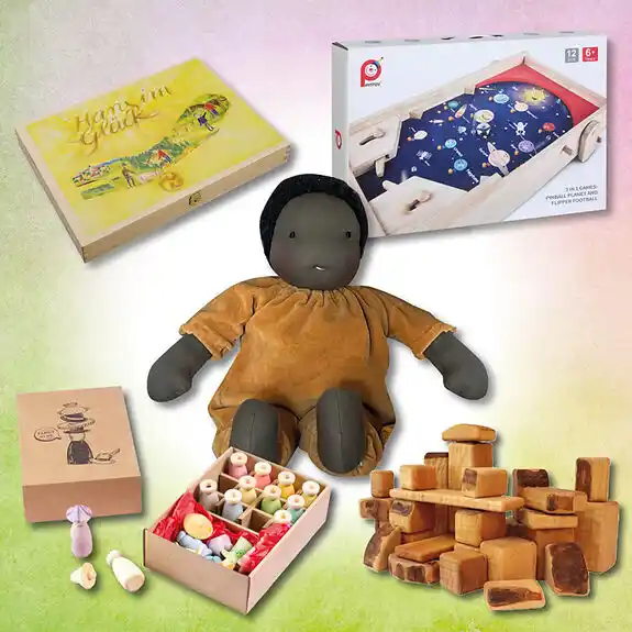 waldorfkind steht für durchdachte Produkte, die Alltag, Familie und Umwelt bewusst verbinden. Unsere Eigenmarke entwickelt Artikel in Zusammenarbeit mit inklusiven Werkstätten und kleinen Manufakturen – Materialien wie FSC-Holz und Bio-Baumwolle sind dabei selbstverständlich. Verpackungsarme Logistik und faire Produktionsbedingungen sind gelebter Anspruch. Jedes waldorfkind-Produkt trägt unsere Vision von Wertigkeit, Ästhetik und Verantwortung – gestaltet, damit Kinder spielerisch, kreativ und nachhaltig ihre Welt entdecken.
