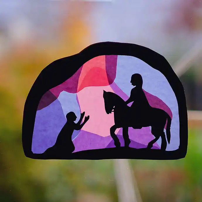 Folia | Laternen-Bastelset klein | Bastelset für Laternen | 3 Größen | St. Martin mit Kerzenstecker, Ø 11 cm