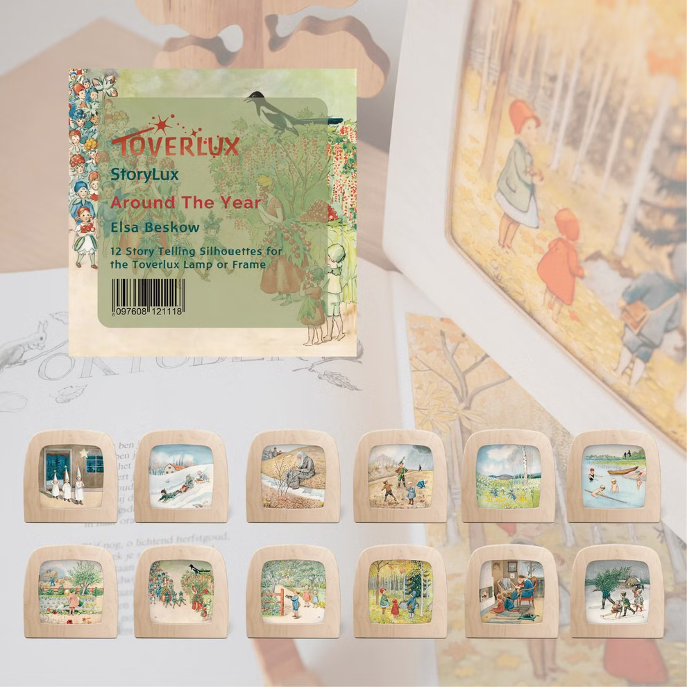 Deze speciale set bevat 12 fijn ontworpen silhouetten die de schoonheid en diversiteit van het jaar weerspiegelen. Elk silhouet kan eenvoudig in de Toverlux lamp worden geplaatst, waar het zijn volle effect ontvouwt. Zo wordt je huis het hele jaar door vergezeld van sfeervolle beelden die zowel kinderen als volwassenen zullen betoveren. Je kind kan de motieven zelfstandig veranderen en op speelse wijze het ritme van de seizoenen ervaren.
