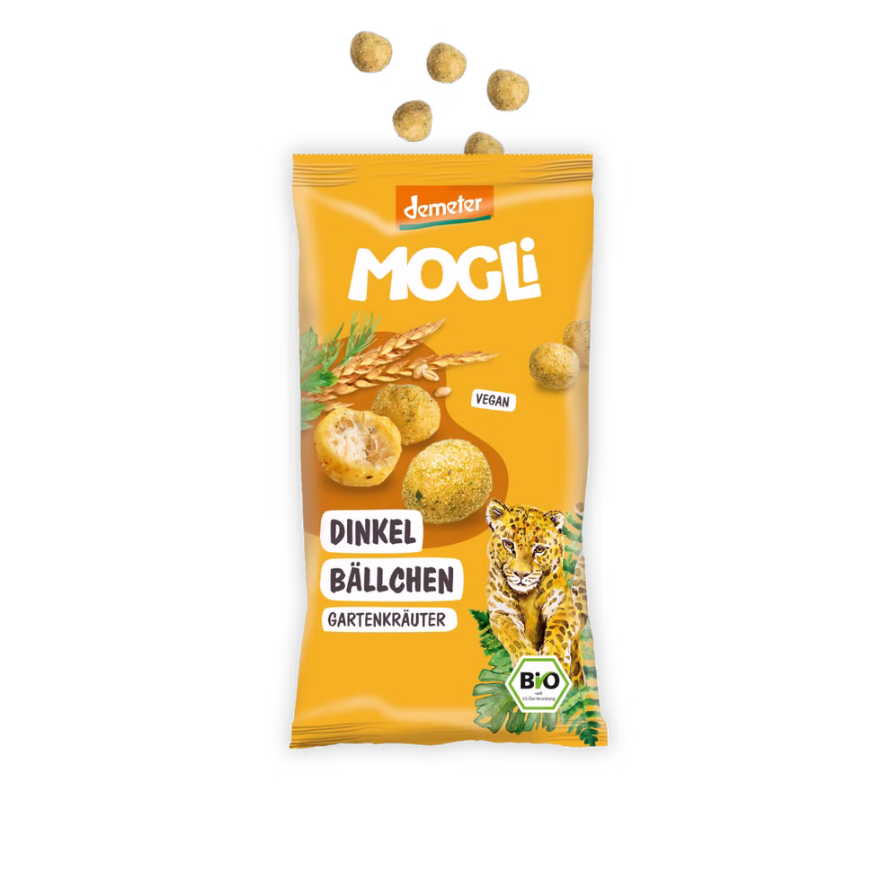 Natürlicher Knabberspaß für unterwegs: Die MOGLi Dinkel Bällchen Gartenkräuter sind luftig-leicht gebacken und mit einer milden Gartenkräutermischung verfeinert. Hergestellt aus Dinkel- und Maismehl, ganz ohne künstliche Aromen und mit nur wenigen Zutaten, überzeugen sie mit ihrem mild-würzigen Geschmack und einer kinderfreundlichen Rezeptur.