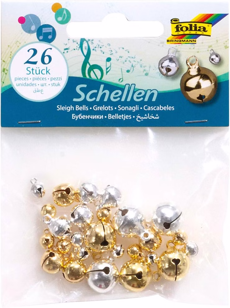 26 Glöckchen, gold und silber, in 3 Größen, sortiert.