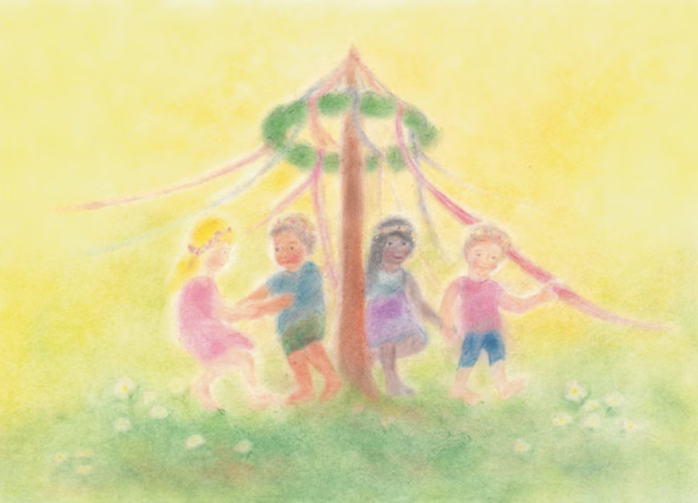 Begrüße die warme Jahreszeit mit diesem lebendigen Motiv. Die Karte fängt die Freude und Gemeinschaft des traditionellen Maifestes ein und bereichert deine Dekoration oder deine Post an liebe Menschen.