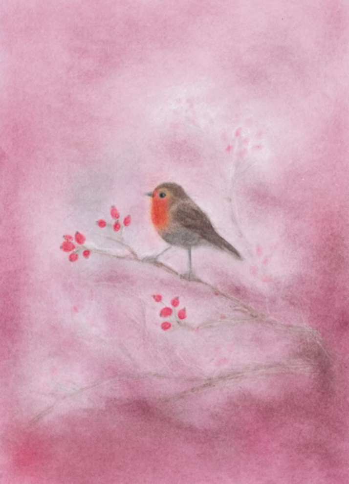 Diese Postkarte zeigt ein detailreiches Rotkehlchen-Motiv, das von der Künstlerin Andrea Reiß in der besonderen Seccorell-Technik erstellt wurde. Durch das Wischen von Farbpigmenten entstehen sanfte Farbübergänge und eine lebendige Textur, die dem kleinen Vogel eine fast greifbare Präsenz verleihen. Die Karte eignet sich hervorragend für den Jahreszeitentisch im Frühling, als Beigabe zu einem Geschenk oder einfach als Sammelobjekt für Liebhaber feiner Naturillustrationen. Das klassische Postkartenformat bietet auf der Rückseite ausreichend Platz für deine persönlichen Worte. Die hochwertige Druckqualität sorgt dafür, dass die charakteristischen Strukturen der Wischtechnik erhalten bleiben.