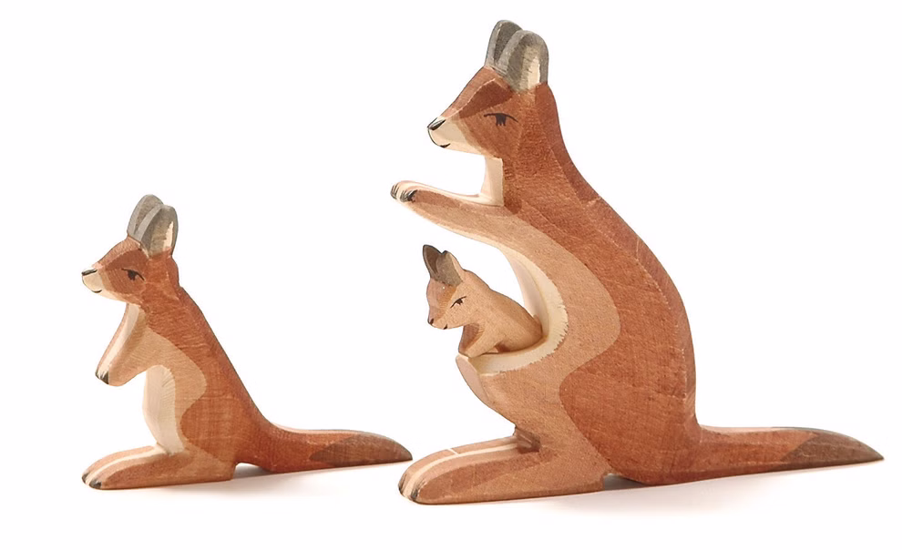 Das kleine Känguru hüpft neugierig durch die weite Landschaft und lädt dich zu fantasievollen Abenteuern in ferne Länder ein. Mit seiner sanften Form und der natürlichen Ausstrahlung ist es ein liebevoller Begleiter im freien Spiel und bereichert jede Sammlung von Holzfiguren.
