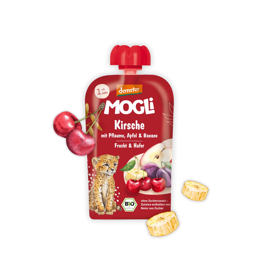 Alle Zutaten stammen aus kontrolliert biologischem Anbau, ein Teil sogar aus Demeter-Landwirtschaft. So bleibt der ursprünglich natürliche Geschmack der Früchte und des Hafers erhalten. Ganz ohne Zuckerzusatz, künstliche Aromen oder Konzentrate überzeugt der Quetschie mit einer milden, kinderfreundlichen Rezeptur, die kleine Entdecker:innen begeistert. Ob in der Brotdose, auf dem Spielplatz oder bei Ausflügen ins Grüne – der MOGLi Quetschie Kirsche ist praktisch, fruchtig und immer griffbereit.