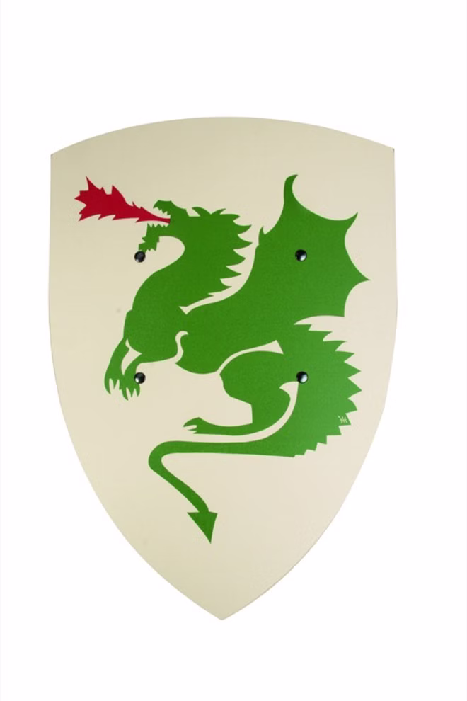 Ein grüner Drache auf weißem Grund mit einem Griffband hinten. Für die tapfersten Rollenspieler geeignet.
