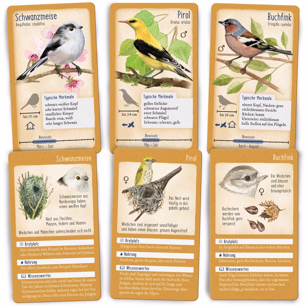 Wie sieht ein Kleiber aus? Und woran erkennt man eine Blaumeise? Mit diesem Kartenset tauchst du in die bunte Welt der heimischen Singvögel ein. Auf 56 handlichen Karten findest du sachliche Informationen und detailreiche Illustrationen, die dir helfen, die gefiederten Freunde in der Natur oder im eigenen Garten kennenzulernen. So wird Wissen spielerisch vermittelt und deine Beobachtungsgabe geschärft – perfekt für neugierige Kinder und naturbegeisterte Erwachsene.