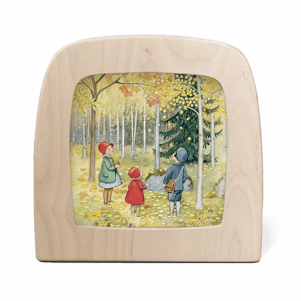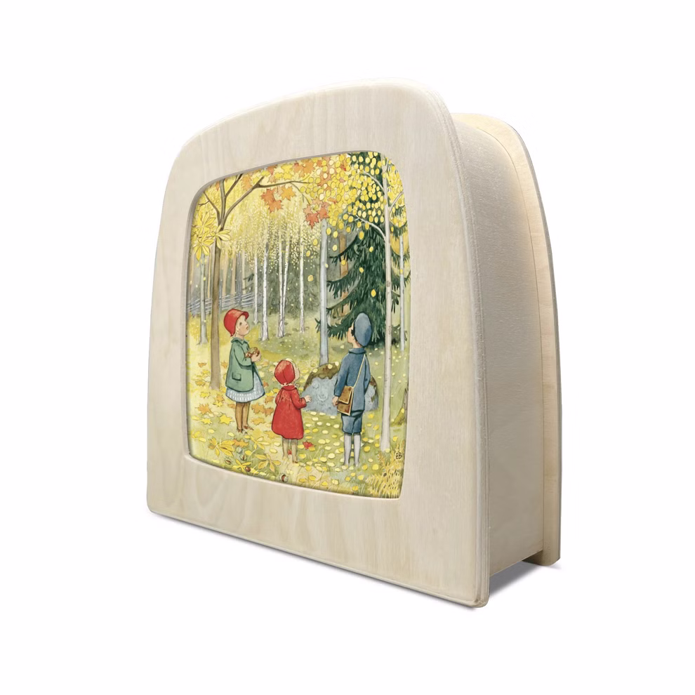 Mit dieser Toverlux-Silhouette von Elsa Beskow hältst du ein Stück herbstlicher Poesie in den Händen. Zarte Farben und liebevolle Details lassen den Zauber des Oktobers lebendig werden, wenn die Silhouette in die Toverlux-Lampe oder den Rahmen eingesetzt wird. So entsteht ein warmes, leuchtendes Bild, das dich durch die goldene Jahreszeit begleitet.
