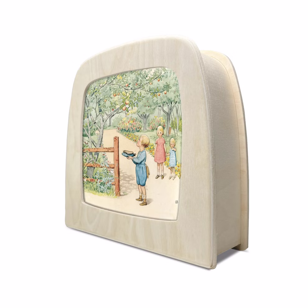 Mit der September-Silhouette von Elsa Beskow hältst du ein kleines Kunstwerk in den Händen, das die stille Schönheit des Spätsommers einfängt. Die liebevoll gestaltete Szene erwacht zum Leben, sobald sie in die Toverlux-Lampe oder den passenden Rahmen eingesetzt wird. Warmes Licht bringt die feinen Details zum Leuchten und schafft eine sanfte, stimmungsvolle Atmosphäre in deinem Zuhause.