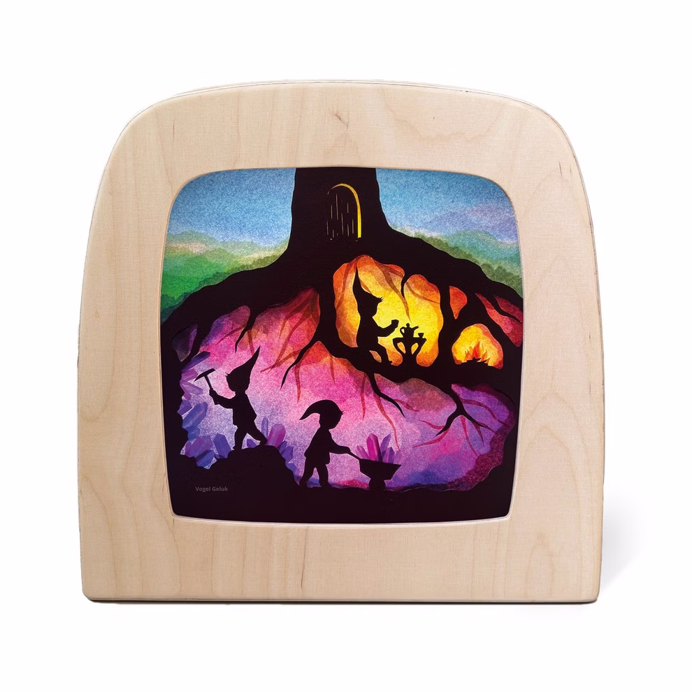 Die liebevoll gestaltete Toverlux-Silhouette „Zwerge“ von Vogel Geluk bringt mit ihrem zarten Lichtspiel eine märchenhafte Stimmung in dein Zuhause. Wenn du sie in die Toverlux-Lampe oder den Toverlux-Rahmen schiebst, erwacht die Szene zum Leben – kleine Wichtel und Zwerge tauchen in sanftes Licht und laden zum Träumen ein. Jede Silhouette fängt auf einzigartige Weise den Zauber der Natur und den Rhythmus der Jahreszeiten ein.