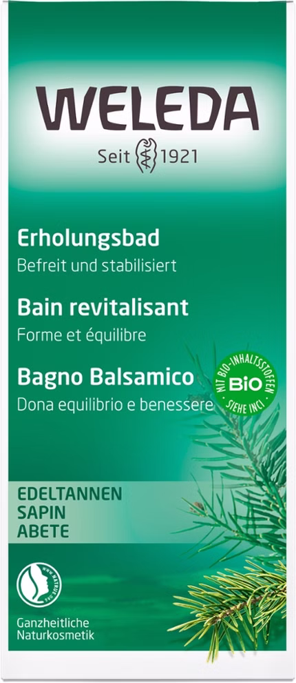 Sie sind angespannt, überreizt oder erschöpft? Dann hilft Ihnen unser Edeltannen-Erholungsbad neue Kraft zu schöpfen und einen inneren Ausgleich zu finden. Die wertvollen echten ätherischen Öle von Fichte und Edeltanne duften fein würzig und entführen Ihre Gedanken in die ruhige Natur des Waldes. Die Bade-Essenz enthält ausgesuchte Rohstoffe pflanzlichen Ursprungs. Die gute Hautverträglichkeit ist dermatologisch bestätigt.