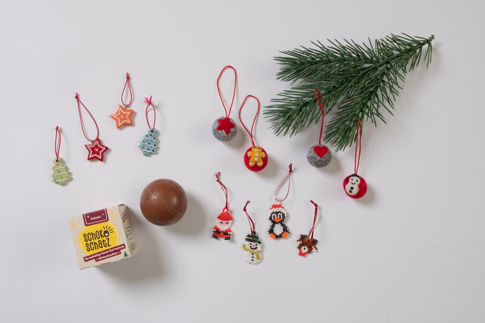 Faire Weihnachtsedition – nachhaltige Schoko-Überraschung mit handgemachten Anhängern